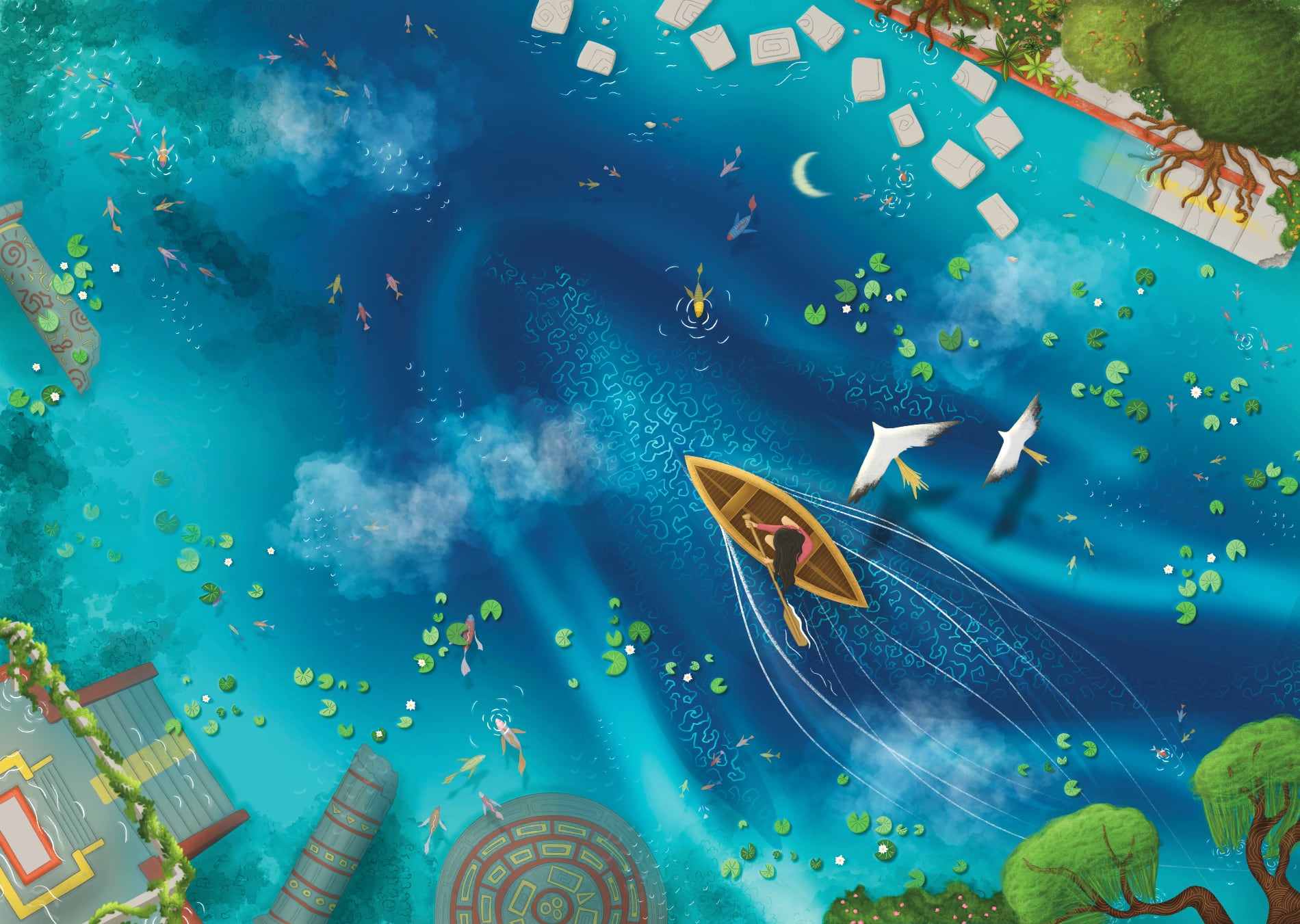 L'illustration Answer the Call (Réponds à l'appel) te propose de partir à l'aventure au coeur d'une nature luxuriante. Il t'encourage à suivre le murmure de ton intuition, et à te laisser porter par les éléments pour te relier à ta nature sauvage.